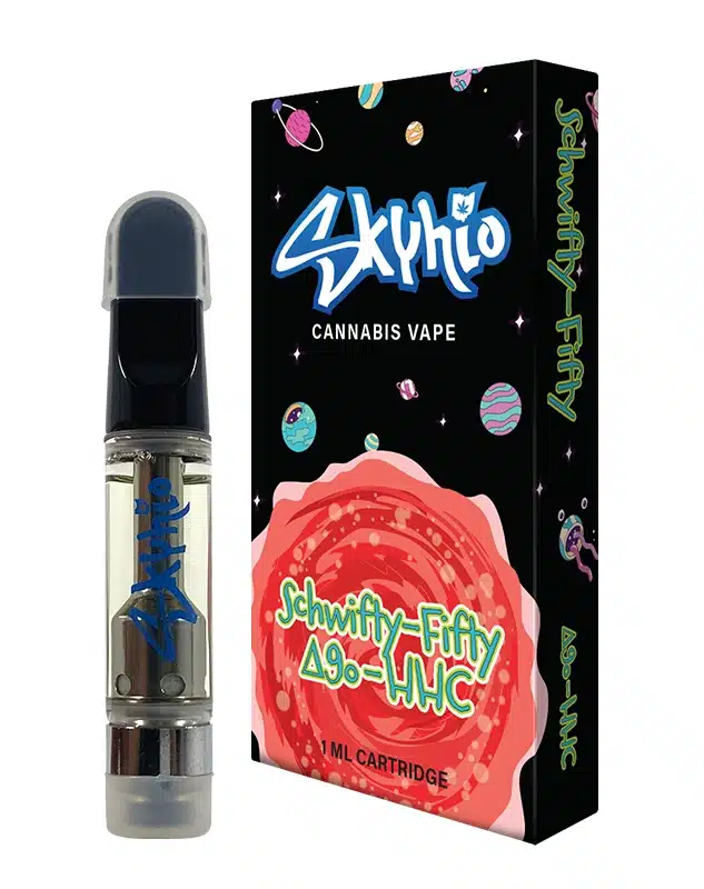Our Schwifty Fifty Delta 9o : HHC Blend vape cartridge is a balanced blend of Delta 9o, HHC, and terpenes.